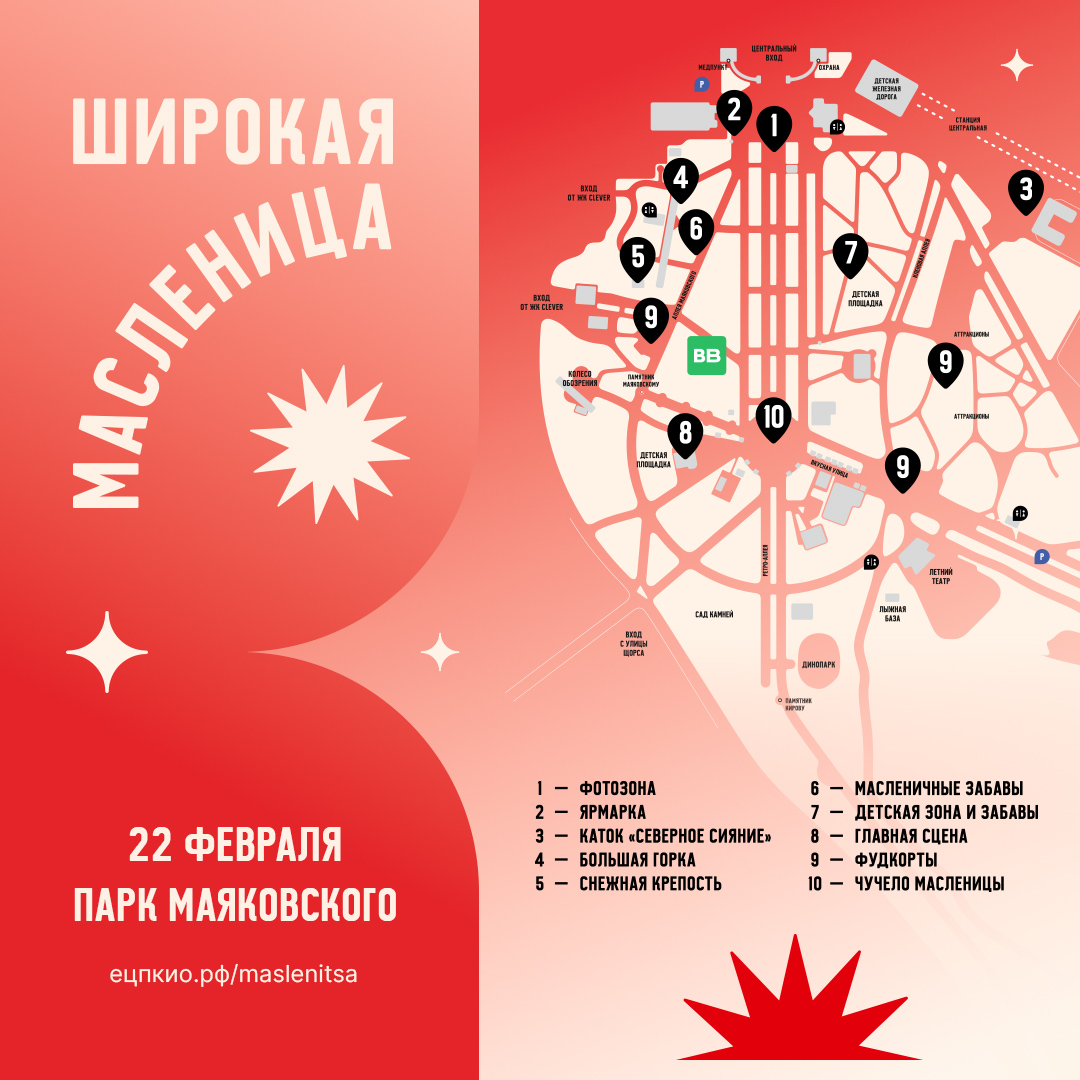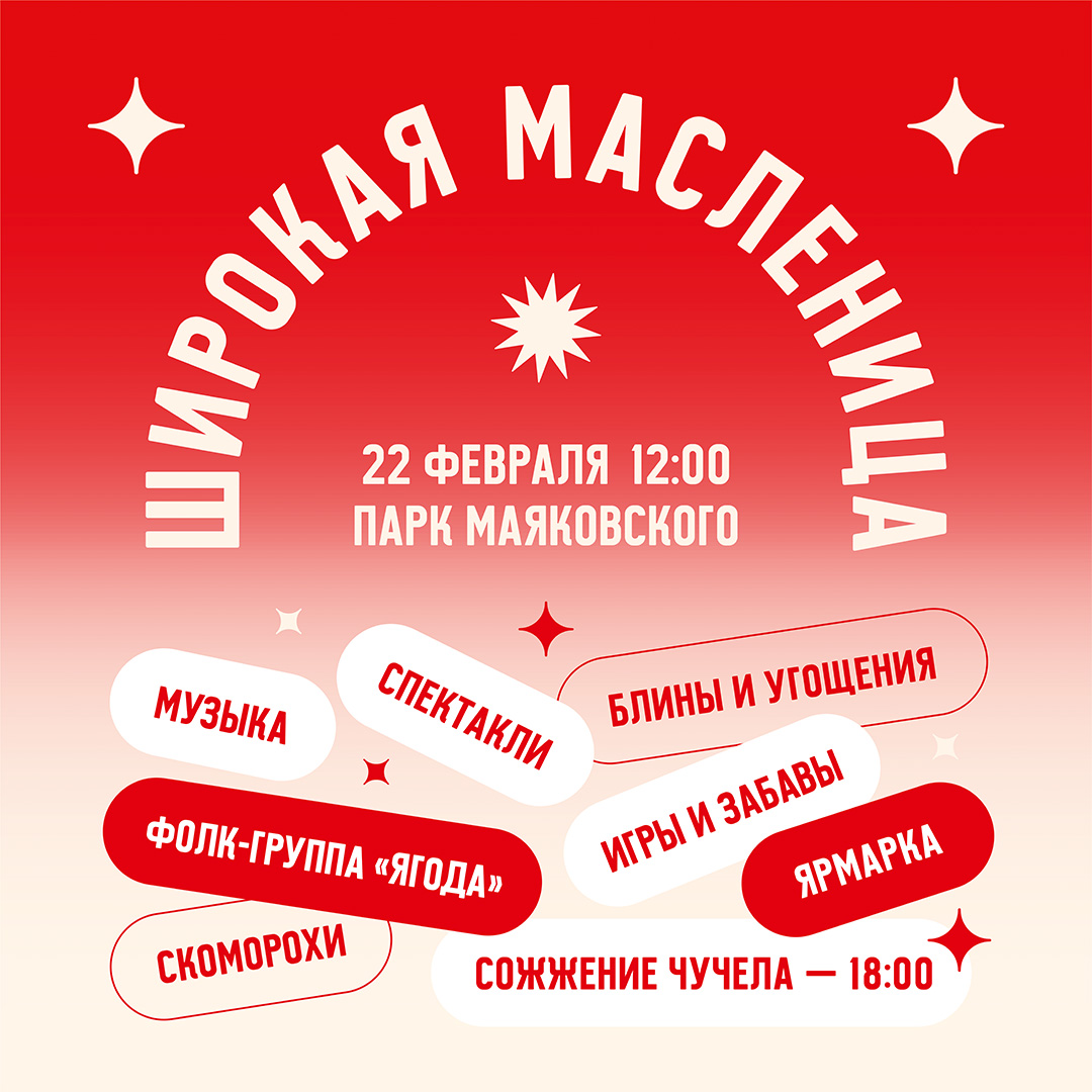 🌞 Широкая Масленица в парке Маяковского — уже в это воскресенье, 22 февраля с 12:00! Ждём всех-всех 🧡